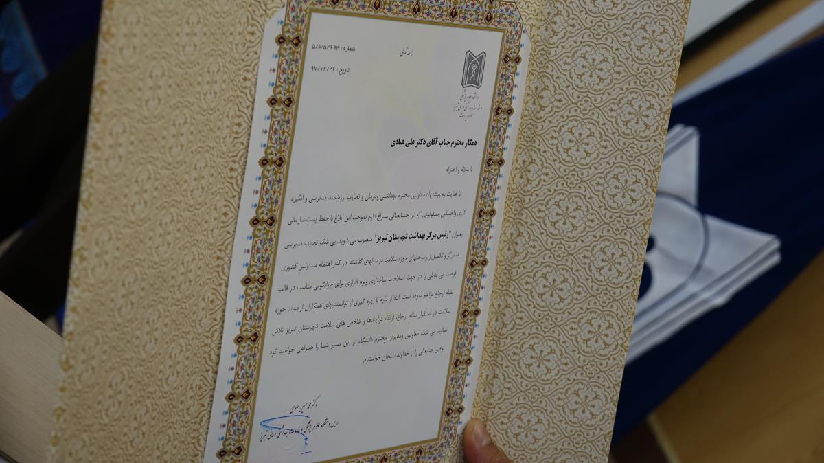 آئین تکریم دکتر خسروشاهی و معارفه دکتر عبادی روسای قبلی و جدید مرکز بهداشت شهرستان تبریز 27 اردیبهشت 97